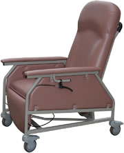 - Full recline, leg ottoman elevated and full upright positions provide maximum comfort for patient