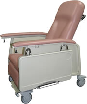 - Ottoman and footrest fold completely under chair, allowing the patient to rise a standing position more easily
